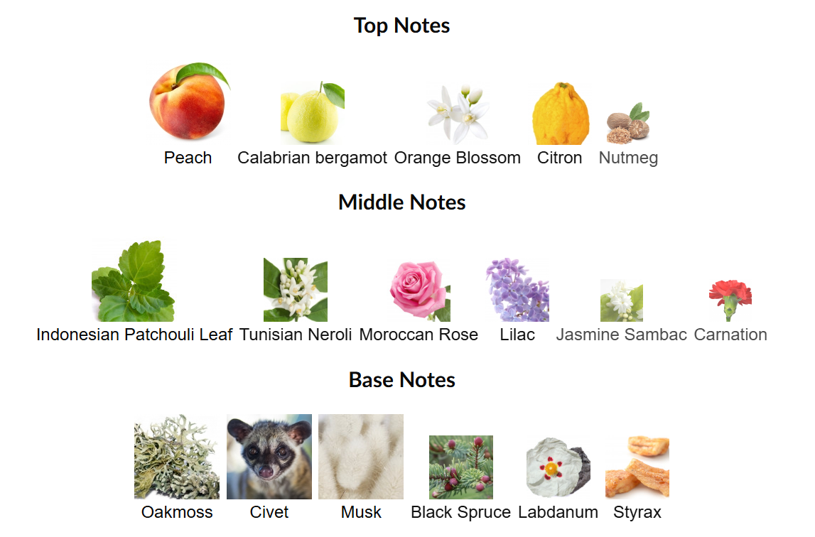 🔼 Peach, Calabrian Bergamot, Orange Blossom, Citron and Nutmeg