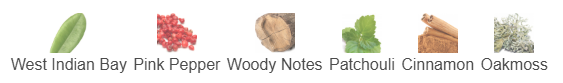 ⏺️ West Indian Bay, Pink Pepper, Woody Notes, Patchouli, Cinnamon and Oakmoss