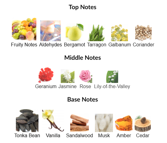 🔼 Fruity Notes, Aldehydes, Bergamot, Tarragon, Galbanum and Coriander