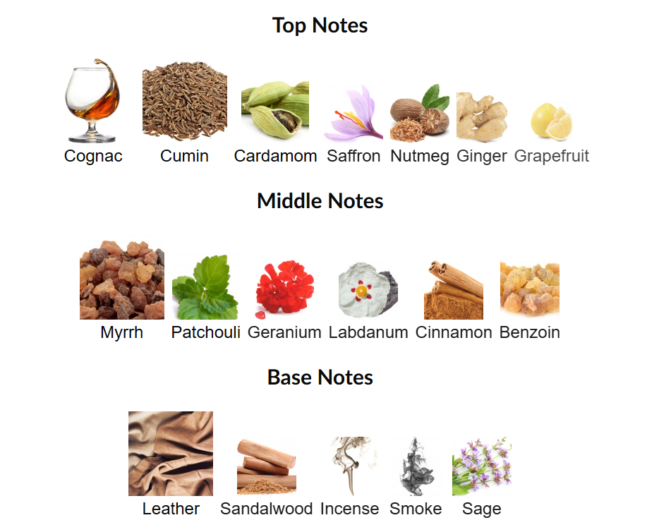 🔼 Cognac, Cumin, Cardamom, Saffron, Nutmeg, Ginger and Grapefruit
