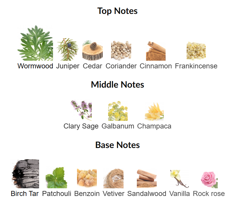 🔼 Wormwood, Juniper, Cedar, Coriander, Cinnamon and Frankincense